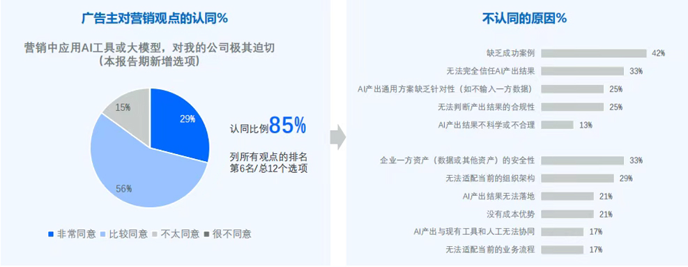 報告顯示,85%的廣告主認為“營銷中應用AI對公司極其迫切”。這種緊迫感來自AI角色的根本性轉變: